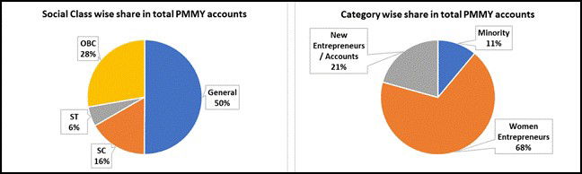 - 50% of Mudra accounts belong to SC/ST/OBC entrepreneurs.