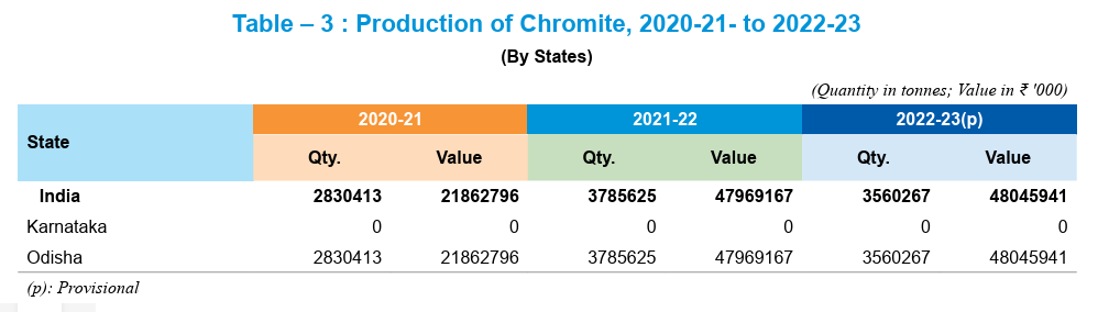 - Statewise: Odisha dominates (>96% resources, mostly Jajpur, Kendujhar, Dhenkanal), minor deposits in Manipur, Nagaland, Karnataka, Jharkhand, Maharashtra, Tamil Nadu, Telangana, Andhra Pradesh.