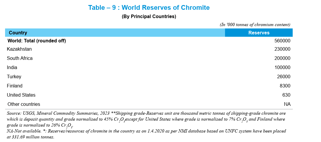 - Reserves: 560 MT (Shipping-grade) – South Africa (36%), Kazakhstan (41%), India (18%), Turkey (4%).