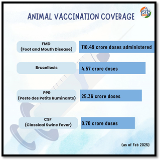 - GOI funds vaccination for FMD, Brucellosis, PPR, CSF across all States/UTs.