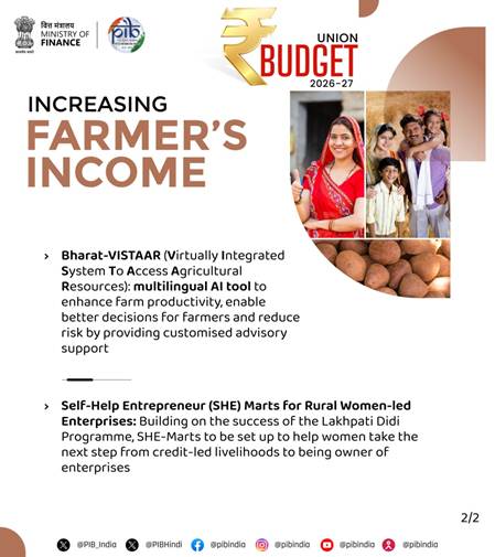 The Union Budget 2026–27 emphasizes Artificial Intelligence (AI), emerging technologies, skilling, and creative industries as key drivers of India’s future growth. With initiatives like Bharat-VISTAAR, AVGC labs, and a high-powered standing committee, the Budget aims to integrate technology with agriculture, education, and employment generation, aligning with the goal of inclusive and capacity-driven development.