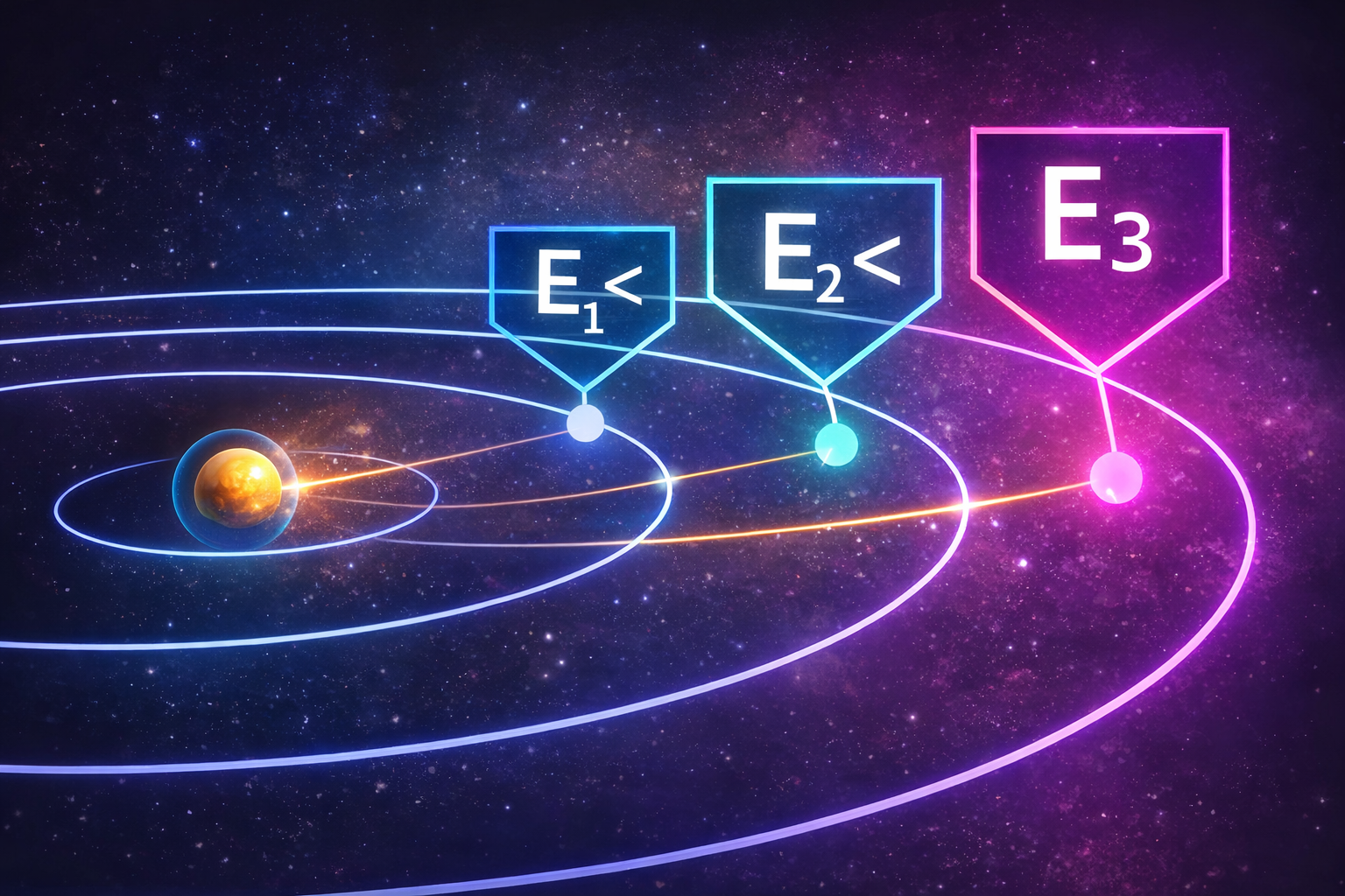 Bohr’s third postulate incorporated into atomic theory the early quantum concepts that had been developed by Planck and Einstein.It states that an electron might make a transition from one of its specified non-radiating orbits to another of lower energy.When it does so, a photon is emitted having energy equal to the energy difference between the initial and final states.The frequency of the emitted photon is then given by