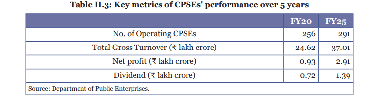 - Gross turnover per CPSE increased by ~32% (FY20–FY25)